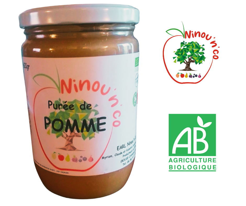 Purée de pomme produit avec 100% de pommes bio, pas de sucre ajouté.